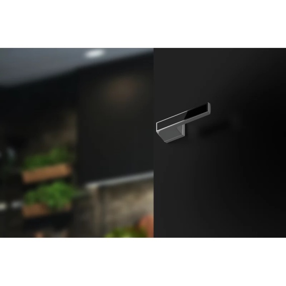 Klamka Maxima w kolorze chrom błyszczący z wstawką czarny mat na rozetce prostokątnej doskonale komponuje się zarówno z nowoczesnymi, jak i tradycyjnymi aranżacjami wnętrzowych przestrzeni.