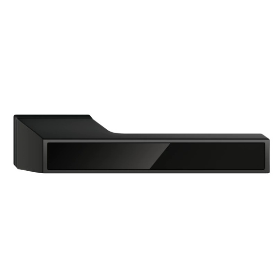 Klamka Maxima w kolorze czarnym z wstawką czarny połysk na rozetce prostokątnej doskonale komponuje się zarówno z nowoczesnymi, jak i tradycyjnymi aranżacjami wnętrzowych przestrzeni.