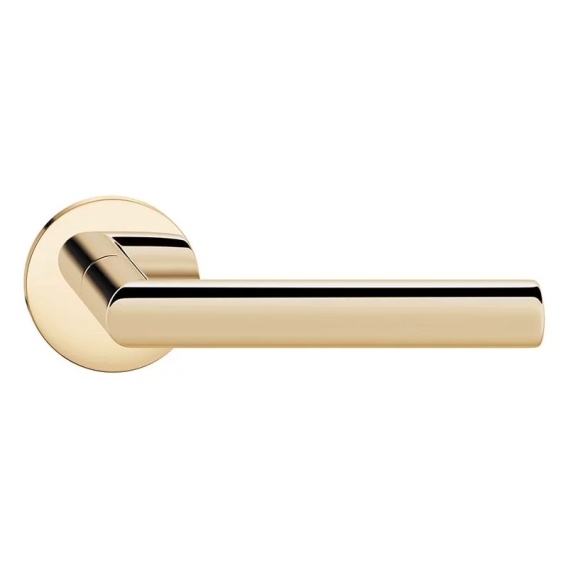 Dzięki technologii PVD (Physical Vapor Deposition), klamka jest wyjątkowo odporna na ścieranie, zarysowania i korozję, co zapewnia jej trwałość oraz intensywny, kolor złoty na długie lata. Model osadzony jest na okrągłej rozecie, która subtelnie podkreśla estetykę drzwi, nie dominując przestrzeni.