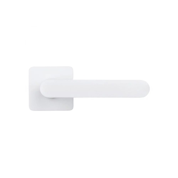 Klamka One Q biała na rozecie kwadratowej z rozetą na wkładkę Colombo
