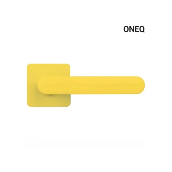 Klamka One Q cytrynowy żółty na rozecie kwadratowej z rozetą na klucz Colombo