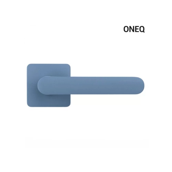 Klamka One Q niebieski ocean na rozecie kwadratowej z rozetą na wc Colombo