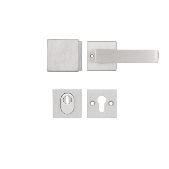 Zawartość opakowania: Komplet zawiera obie połówki - klamkę wewnętrzną i gałkę zewnętrzną + obie połówki rozet dolnych na wkładkę oraz niezbędne akcesoria montażowe. Długość śrub w komplecie 100 mm, trzpień 125 mm.