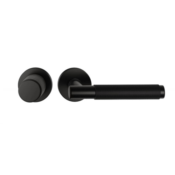 Klamko Gałka Time R Slim ruchoma prawa czarna na rozecie okrągłej Corona