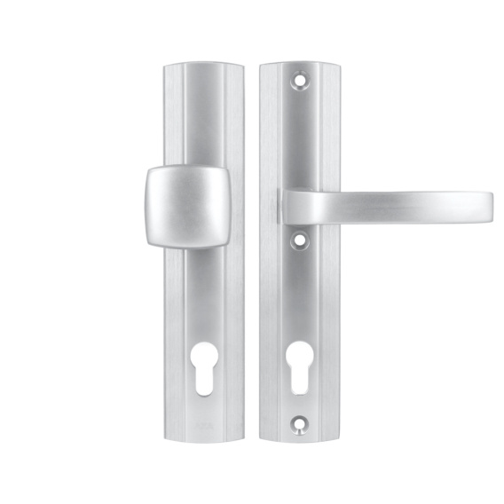 Klamko Pochwyt AXA Prestige ++ w kolorze F1 srebrna to elegancka i funkcjonalna opcja dla drzwi zewnętrznych, łącząca nowoczesny design z nowoczesnymi rozwiązaniami zabezpieczającymi. Wykonana z pełnego profilu aluminiowego z anodowaną powłoką, co zapewnia trwałość i odporność na warunki atmosferyczne.